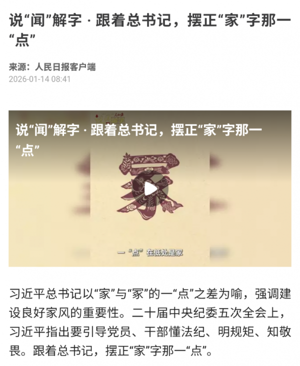 习近平这个大骗子,胸无点墨,读着小本本,使用“家”与“冢”仅一“点”之差说教,只不过是用来粉饰他那套伪善的“家风”说教,仿佛他自己就是那“点”,妄图掩盖整个腐朽的独裁和腐朽!