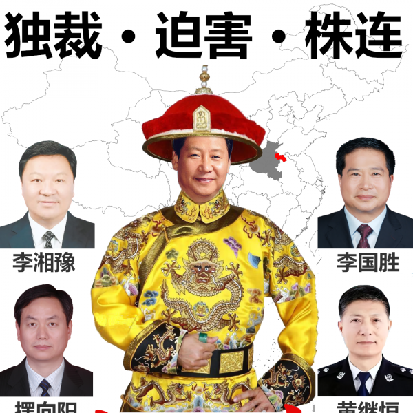 暴君习近平、河南省商丘市以前市委书记李国胜、现市委书记李湘豫、前市长摆向阳、市公安局长黄继恒为首的腐败团伙,